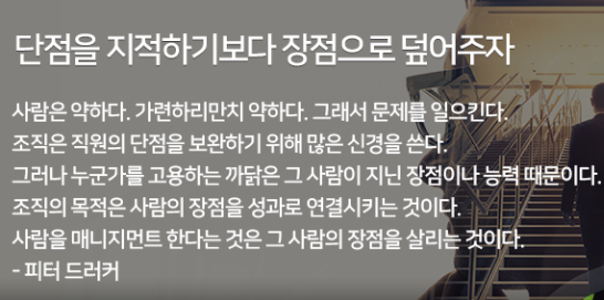 단점에 집착하지 말자. 단점을 고치려는 노력보다는 강점을 키우는 노력이 훨씬 효과적이고 효율이 높다.