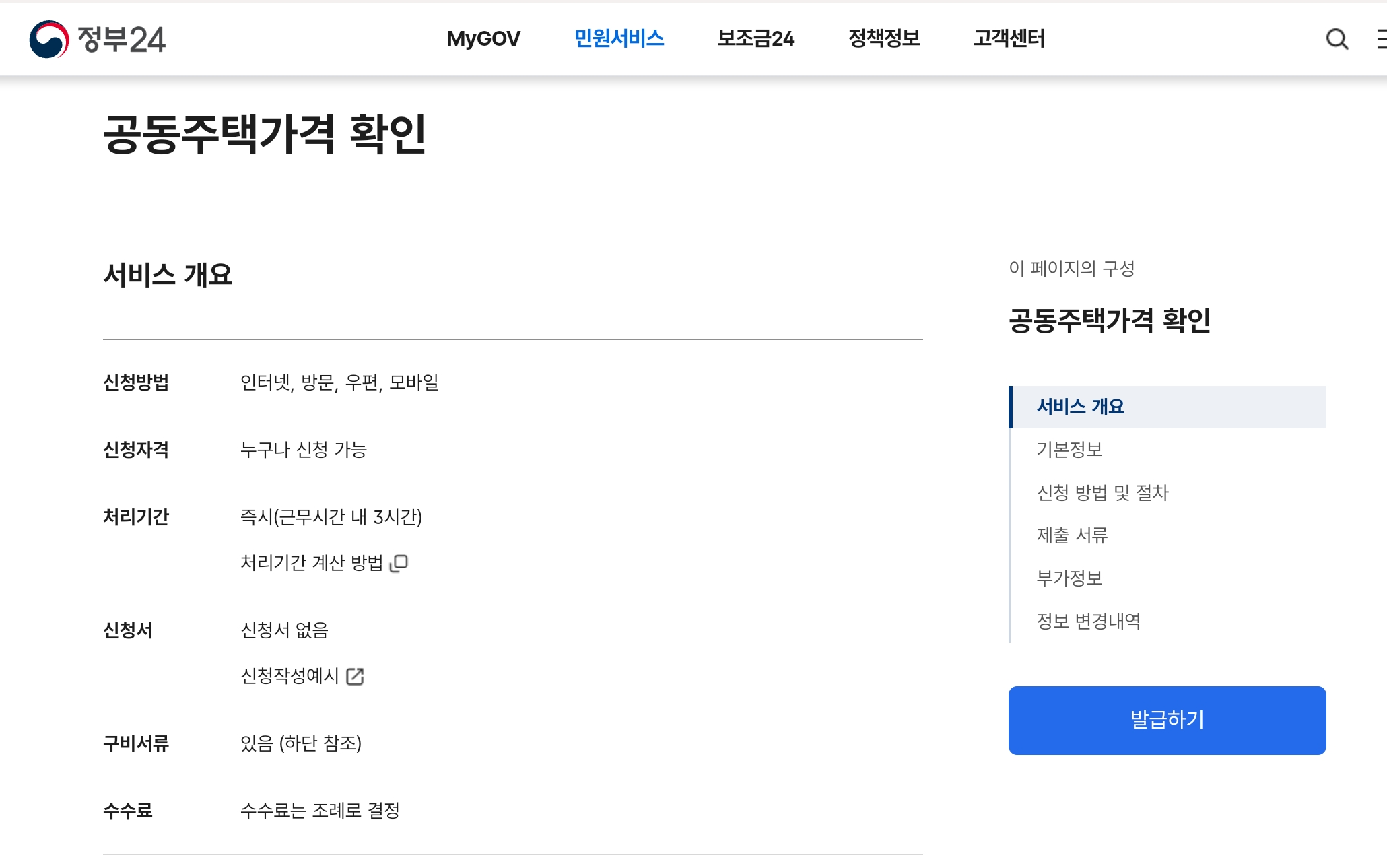 공동주택가격 확인 | 민원안내 및 신청 | 정부24
