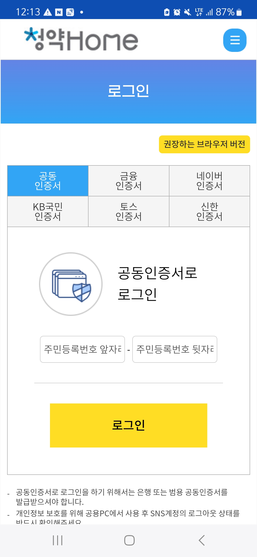 무순위 청약의 경우에는 중복청약 방지를 위해 금융인증서 혹은 공동인증서로만 청약이 가능하다. 다른 kb 인증서로는 일반 청약은 가능하나 무순위 청약은 불가하다.
