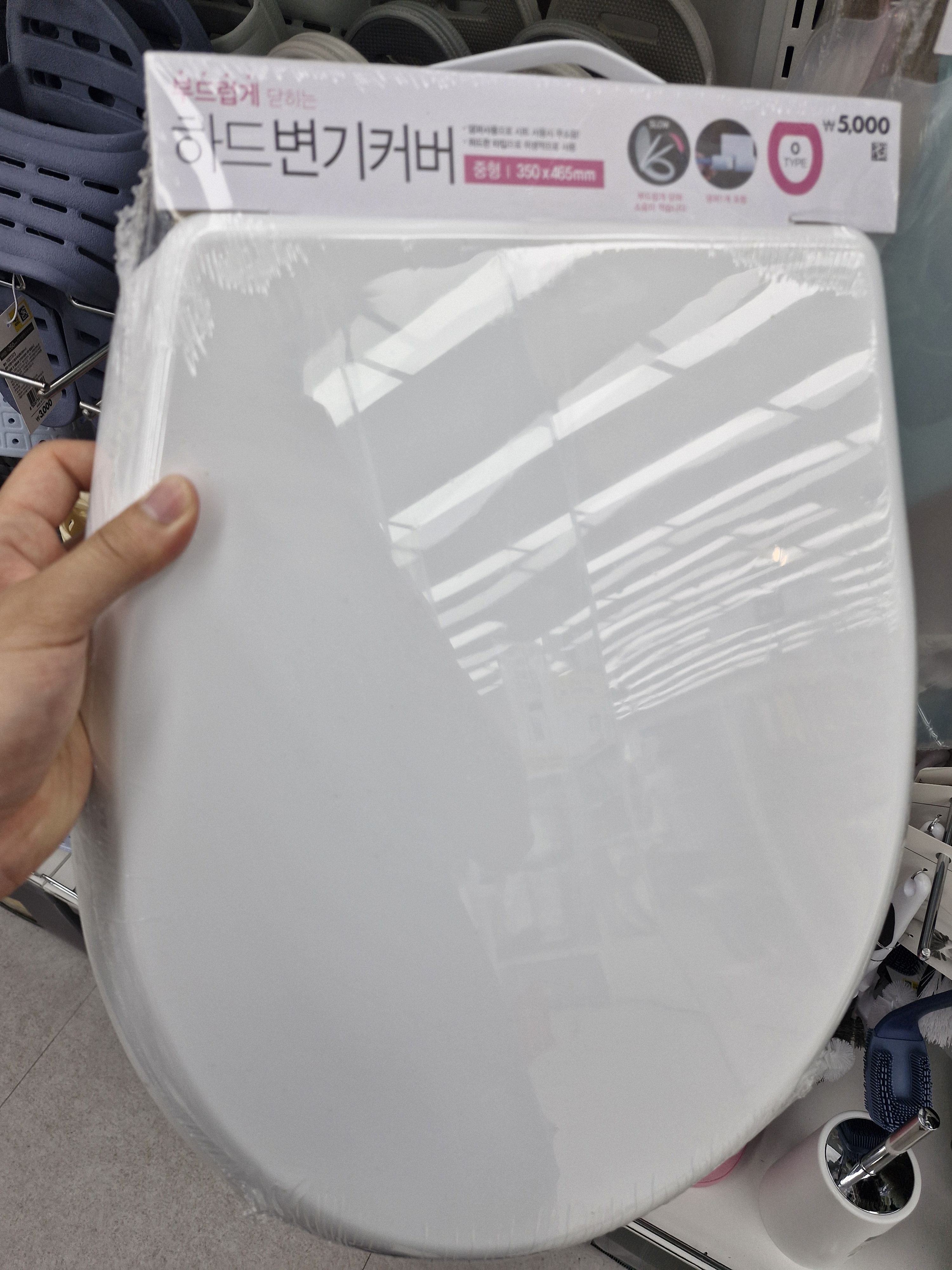 플라스틱으로 된 볼트가 뚝하고 부러졌네요. 전세집이라 좋은 뚜껑으로 교체해놓기는 아까워서, 다이소에 변기 커버가 있는지 가보았습니다. 다행히 변기커버가 있더군요. 가격은 5000원! 매우 합리적인 가격입니다.
