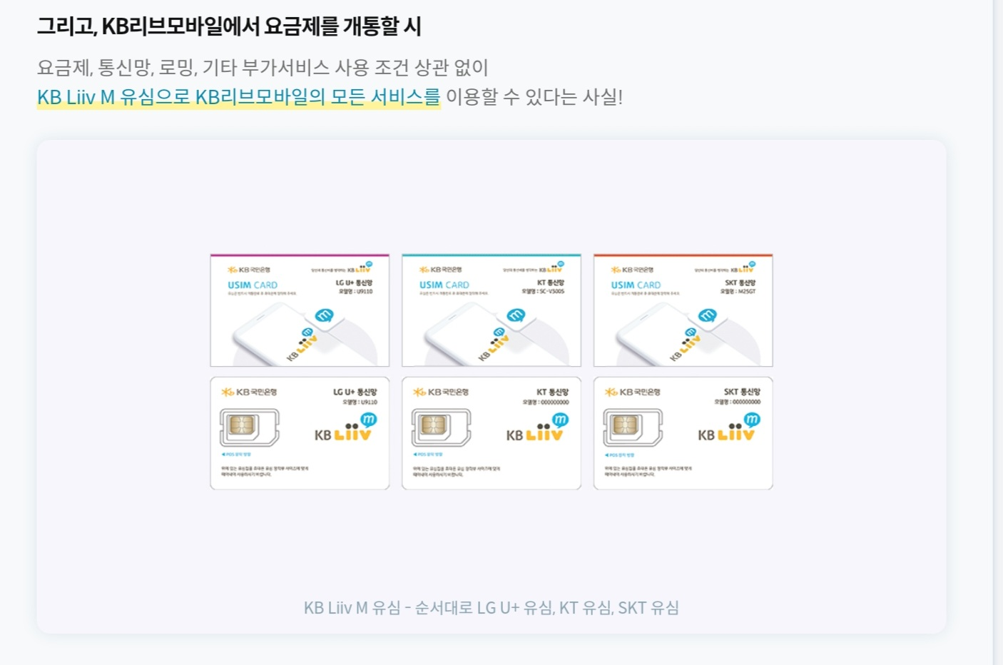 「KB Liiv M」은 KB국민은행의 혁신금융서비스로 금융권 최초로 제공하는 이동통신서비스입니다. 품질 좋은 통신서비스를 합리적인 가격으로 제공하며, 편리하고 안전한 금융거래가 가능한 금융