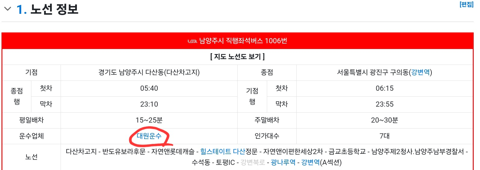우선 내가 탄 버스의 운영회사를 알아야 한다. 운수업체는 나무위키에서 쉽게 찾을 수 있다.