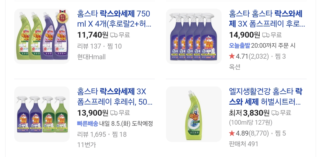 나는 아래 제품을 사용했다. 일반적인 액상 락스는 너무 점도가 낮고 그냥쓰기에는 농도가 높아서 편하게 쓰기에는 아래와 같은 스프레이식, 진한액상식을 쓰면 편하다. (단, 거품이 나므로 잘 닦아줘야함)