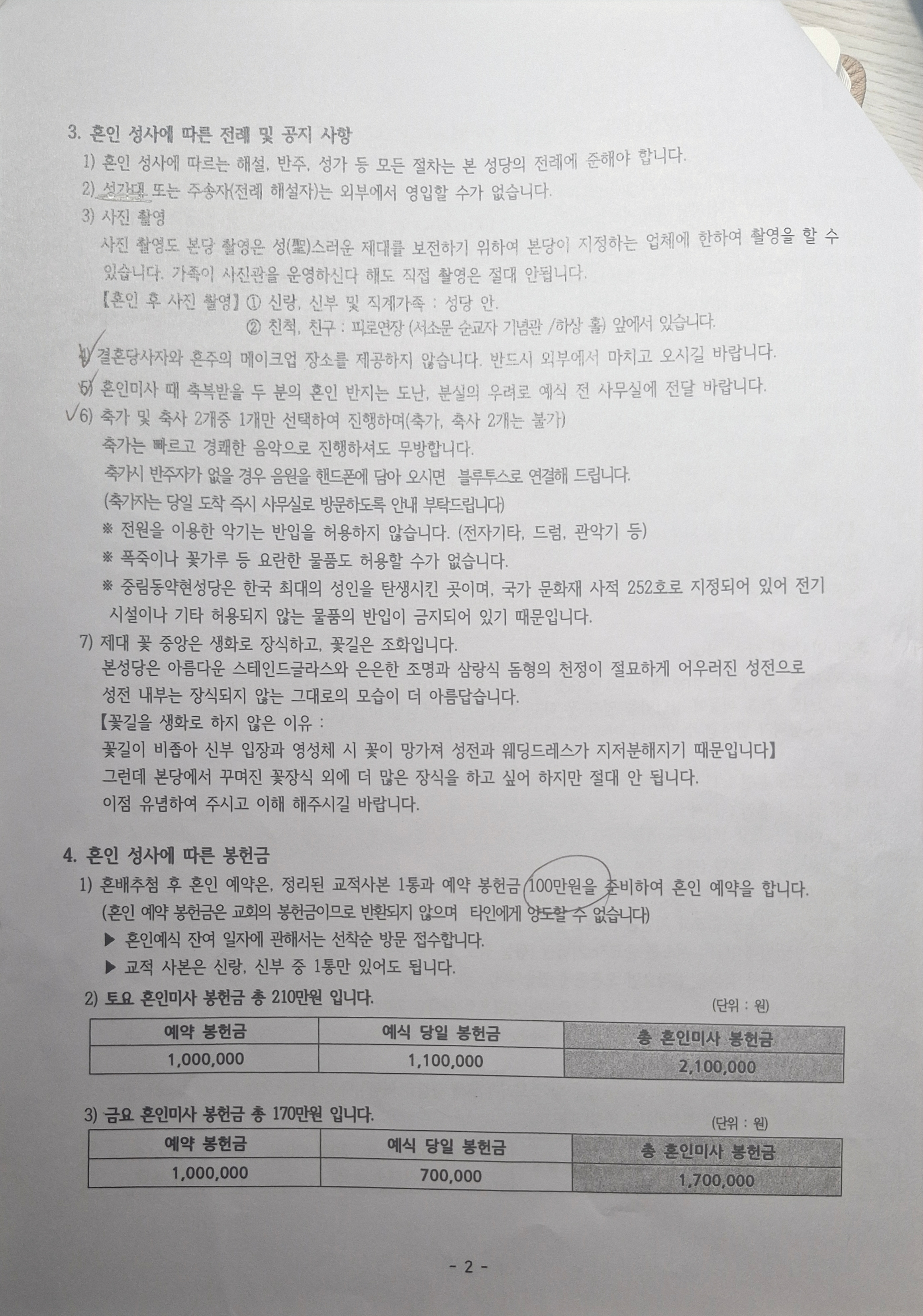 성당에서 계약서 쓰고 이제 다음 절차를 밟아야 한다. (계약시 계약금 100만원 납부)