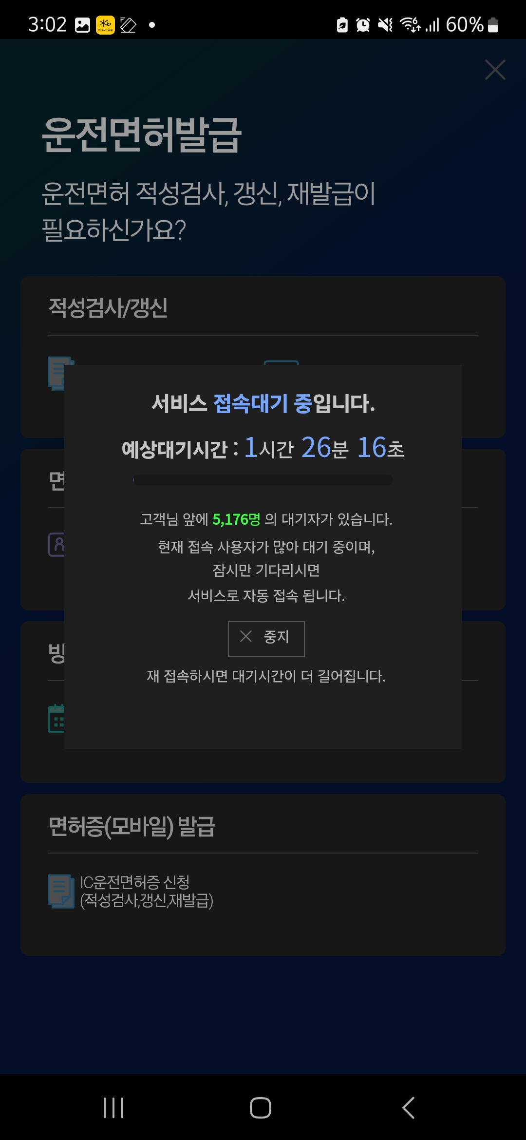 방법은 복잡하지 않다. 위 문자 링크에 맞춰서 사이트 접속 후 적성검사/갱신을 하면 된다. 아침9시에 접속했는데도 대기자가 매우 많았다. 아마 다들 공통적으로 문자를 받아서 그런 듯 싶다.