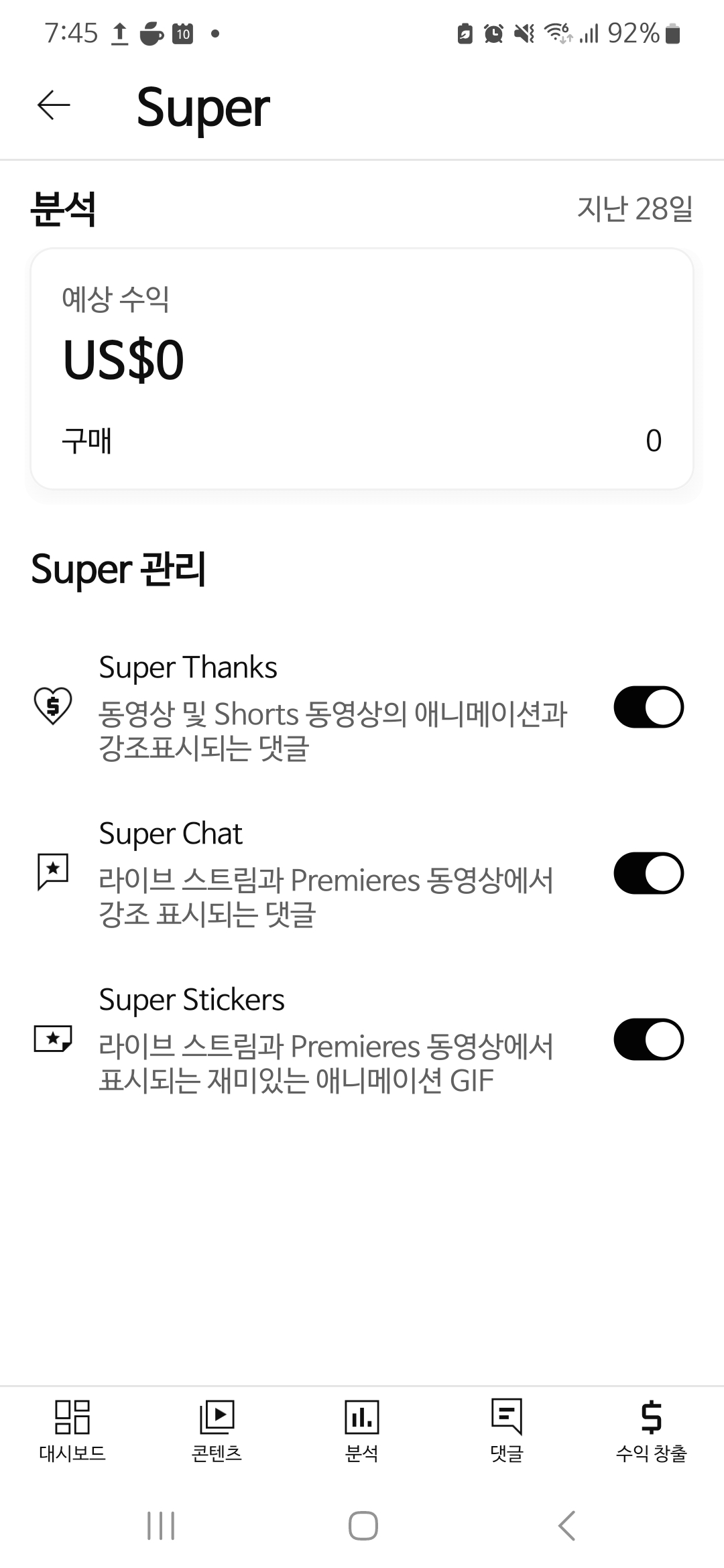 유튜브 스튜디오에 수익란이 생겼다