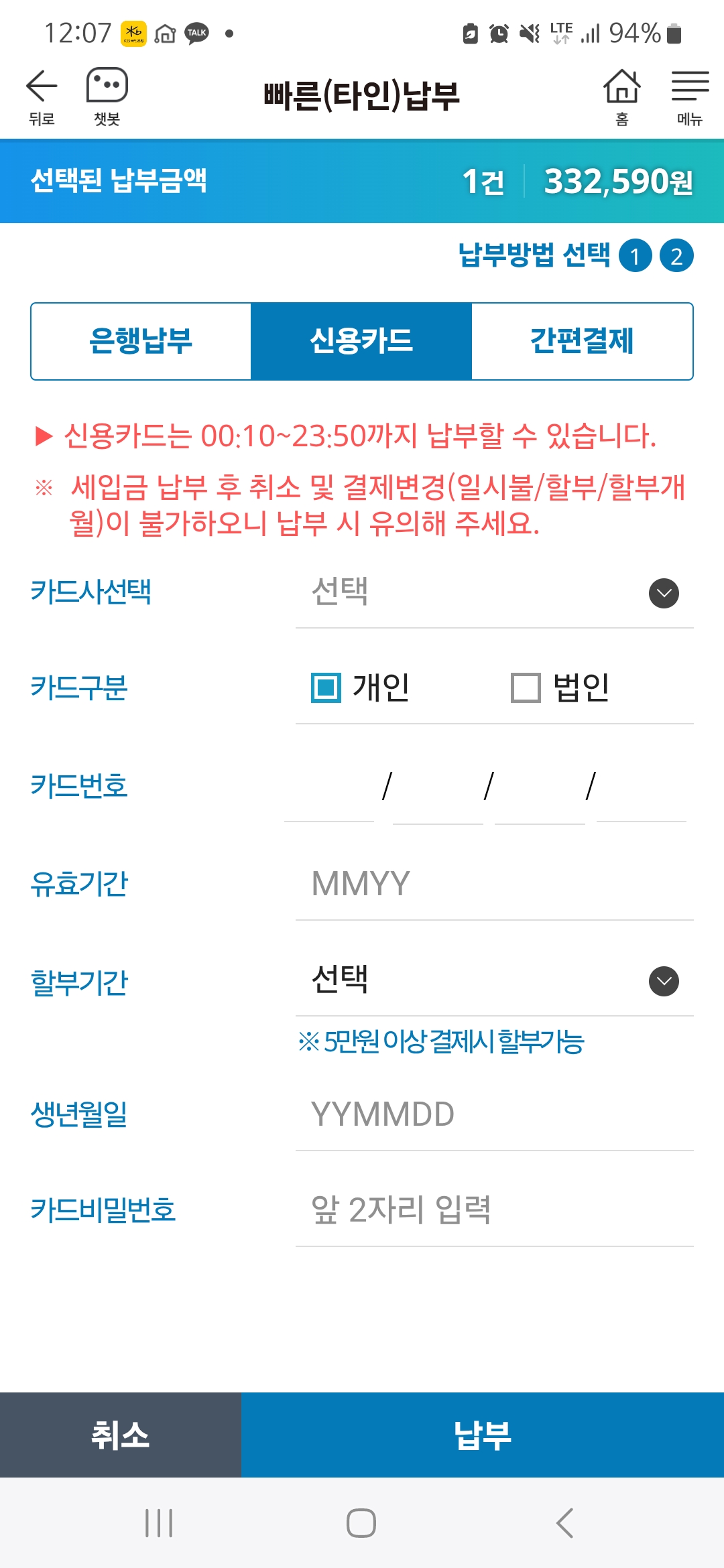 2. 서울시 세금납부 앱에서 신용카드 결제