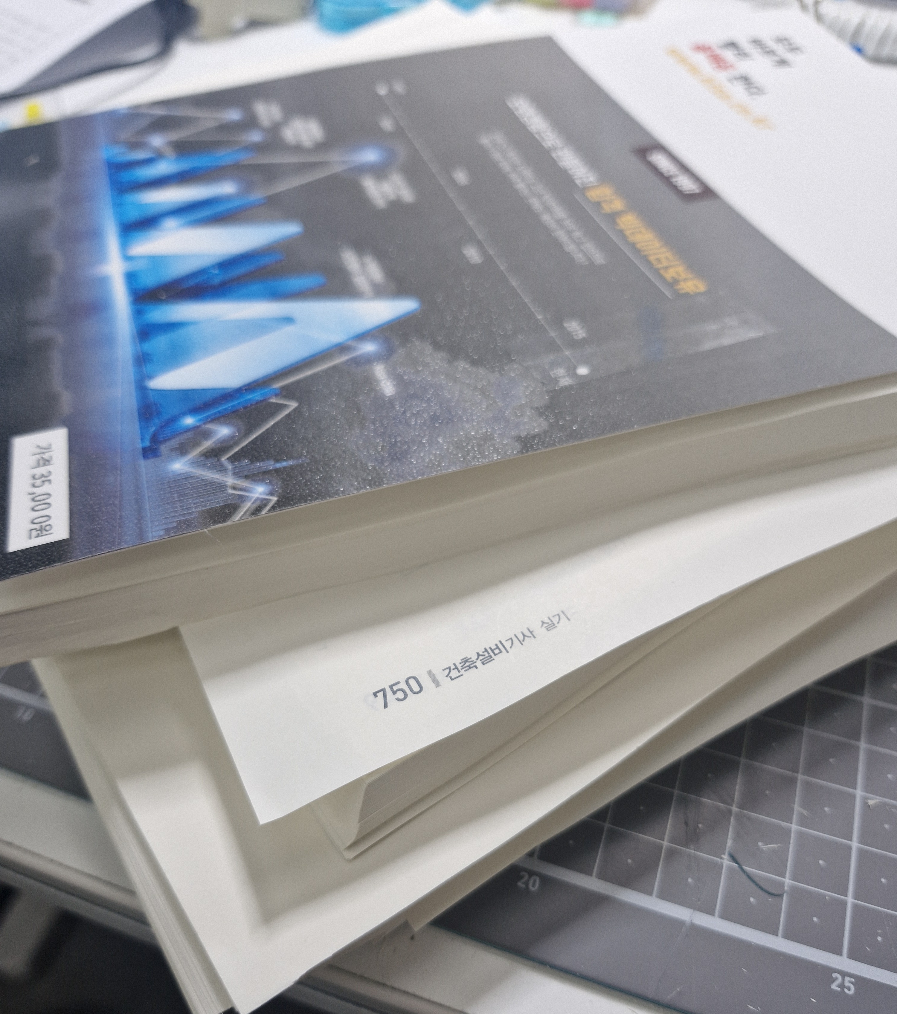 그리고 책을 절단할때는 책 전체를 한번에 자르지 말고, 책을 약 150~200페이지 정도로 나눈다. 600페이지 짜리면 3~4개 정도로 나눈다. 그래야 책등이 균일하게 잘린다. 너무 두꺼우면 책등이 어긋나게 잘린다. 무슨말인지 모르겠으면 한번 600페이지 짜리 분할하지 말고 잘라보자.