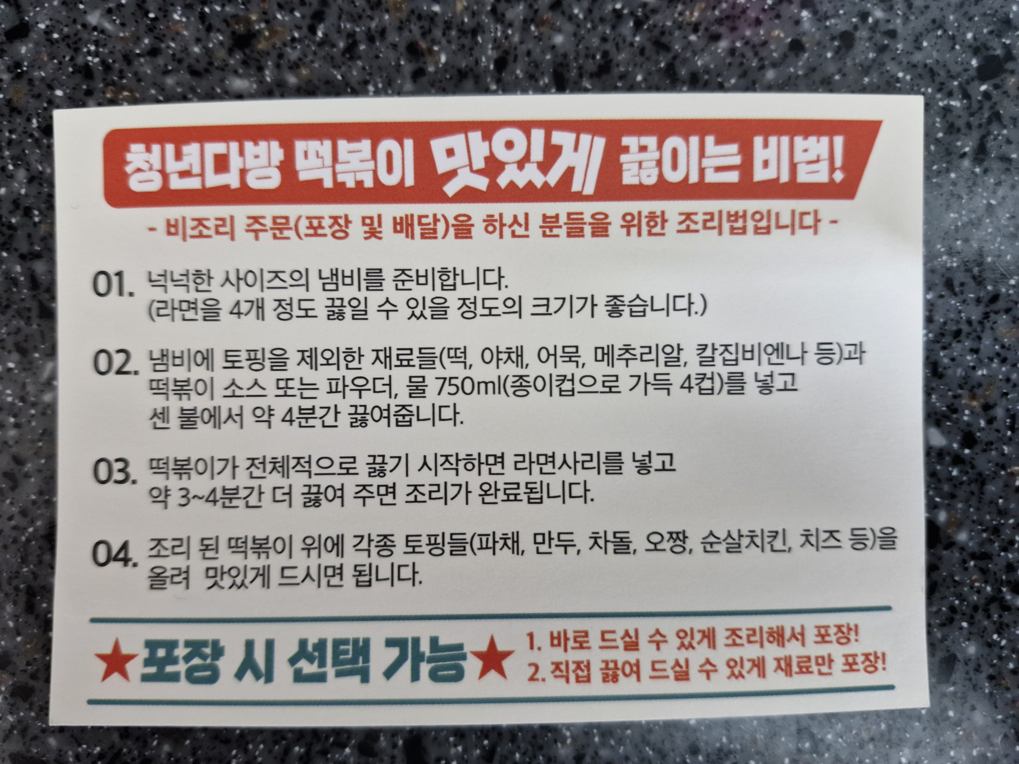 2. 청년다방 떡볶이 비조리 포장