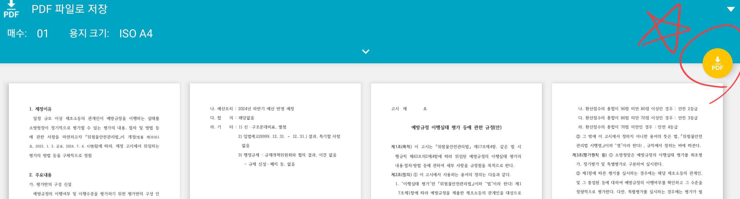 4. 우측에 있는 PDF 저장 노란색 버튼을 누른다.
