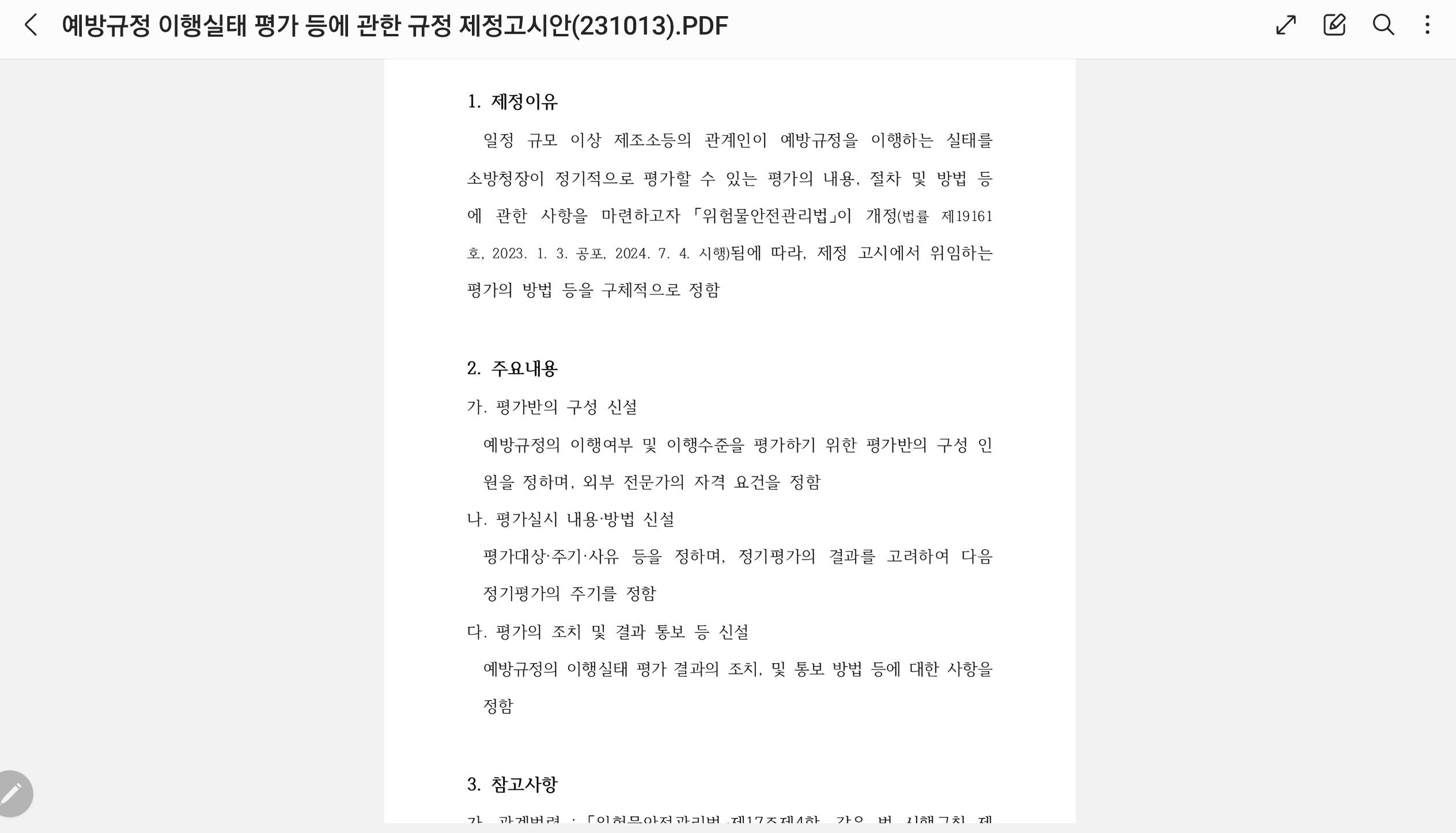 ⊙소방청공고제2024-14호 「위험물안전관리법 시행령」을 개정하는 데에 있어, 그 개정이유와 주요내용을 국민에게 미리 알려 이에 대한 의견을 듣기 위하여 「행정절차법」 제41조에 따라 입