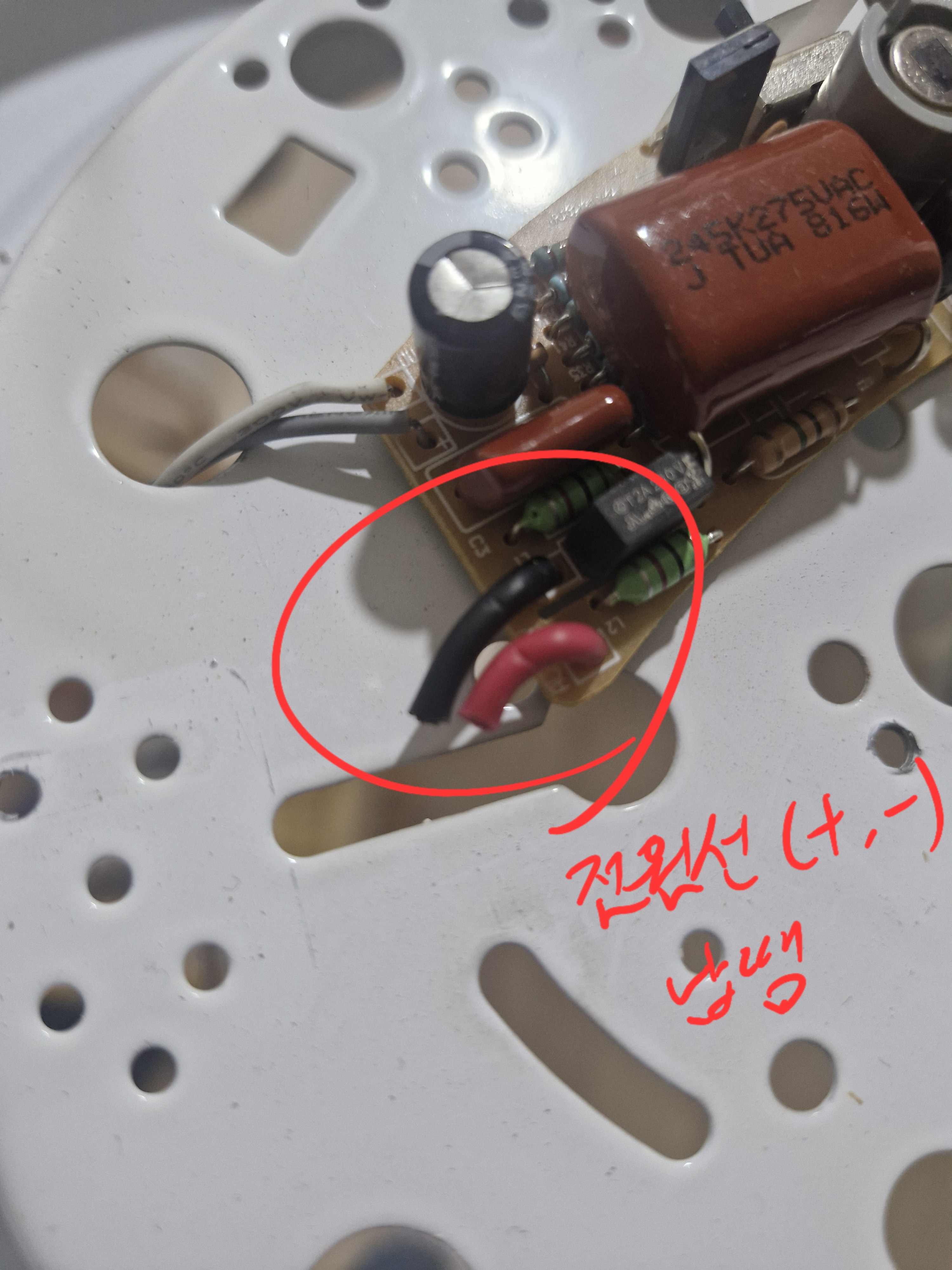 이게 문제점이 뭐냐면, 전원선이 바로 회로에 납땜이 되어 있다. 전원선을 아예 처음부터 이 제품 전용으로 썼다는 건데, 아니 무슨 10년된 집도 아니고 이런 구식 방식인 전등을 쓰면 어쩌냐.... 집주인 진짜 킹받네.