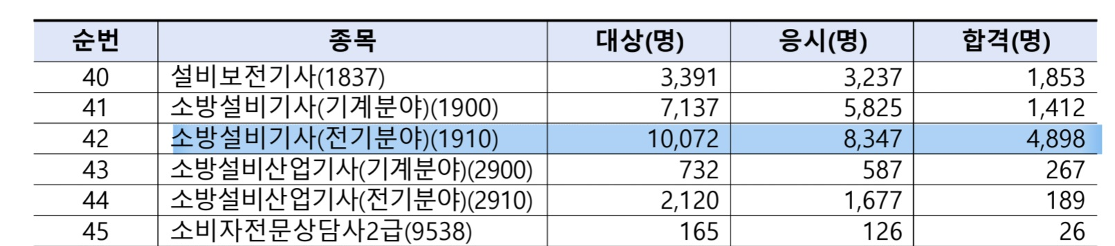 추가적으로 소방설비기사(전기분야) 2회차 실기시험 합격률이 50%가 넘었다고 한다. 응시자들의 말을 들어보면 문제 1개를 잘못 출제하여 전원 정답을 하였다고 한다.