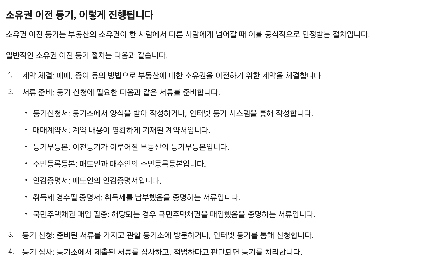 AI에게 소유권 이전 등기 절차를 물어보니 생각보다 그렇게 많은 서류가 필요하지는 않은 것 같다. (법무사 날로 먹네?) 하지만 부동산의 이해관계가 복잡하게 얽혀있는 경우는 미래등기시스템으로 쉽지는 않을 거로 보인다.