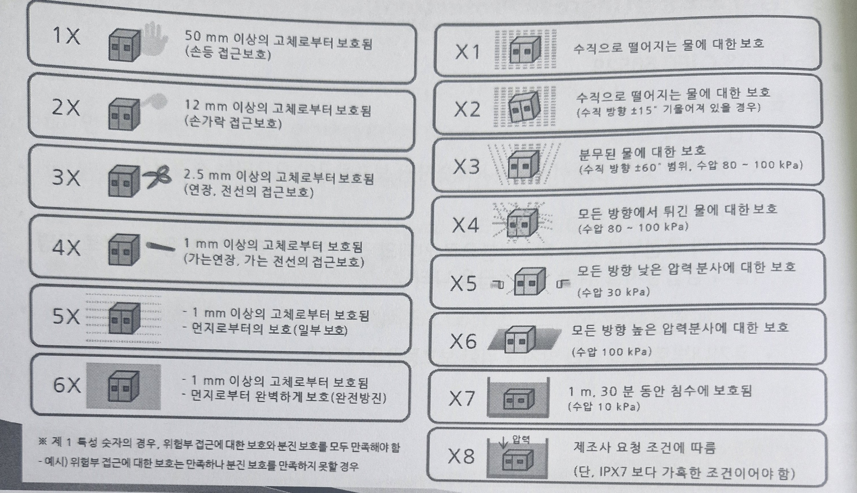 IP 등급 추가 (9:고온, 고압 물 분사/ 전기차 배터리 관련)
